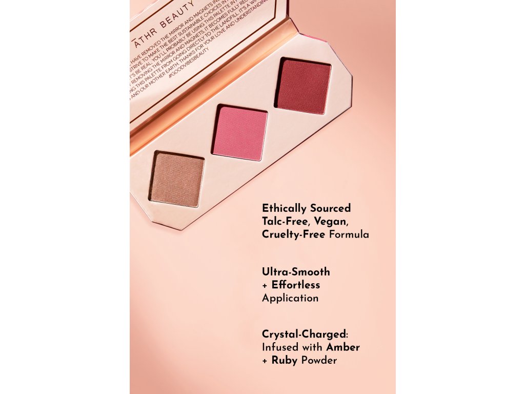 ĀTHR BEAUTY Crystal Charged Cheek Palette RUBY vďaka kryštálovej energii rubínu podporuje prirodzený lesk pleti, obnovuje jej hydratáciu a dodáva jej mladistvý vzhľad. Jeho vrstviteľná a ľahko roztierateľná formula umožňuje jednoduchú aplikáciu a zvýrazňuje prirodzenú krásu.
