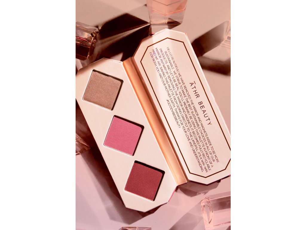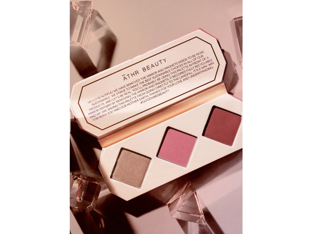 ĀTHR Beauty je čistá udržateľná značka, čo znamená, že skutočne preveruje každú zložku, ktorú nájdete vo všetkých jej produktoch. Palety sú zložené len z čistých, organických a netoxických súčastí, ktoré sú vždy v súlade s ich postupmi udržateľnosti. V ĀTHR Beauty sa okrem iného zaviazali používať organické fair-trade zložky len z udržateľných zdrojov, netestujú na zvieratách a ich výrobky sú plne vegánske. Zároveň prispievajú časťou svojho zisku na environmentálne a humanitárne aktivity organizácie 1 % pre planétu. Čo sa týka obalov, sú 100 % recyklovateľné. Preto v paletách nenájdete napríklad bežne používané magnety alebo zrkadlá, ktoré sa nedajú recyklovať.
