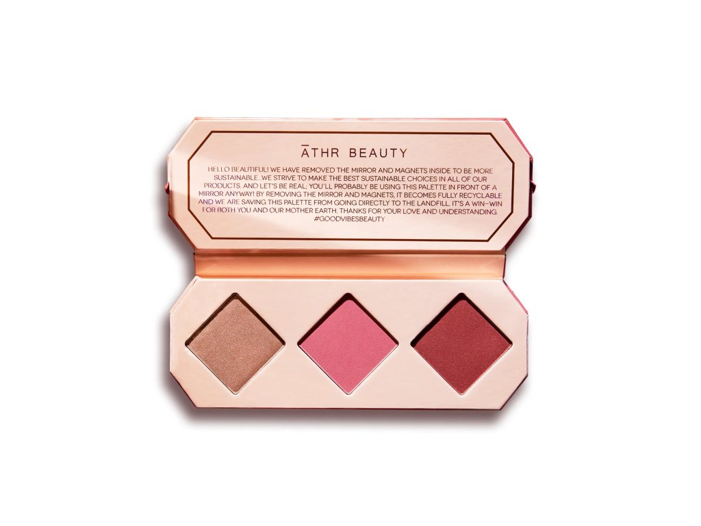 Palety neobsahujú magnety, zrkadlá ani zbytočné materiály, čím sa stávajú prvými paletami na trhu s nulovým odpadom. Každá paleta rúžov ATHR Beauty je vyrobená z papiera s certifikátom FSC, sójového atramentu na vodnej báze a recyklovaných hliníkových vaničiek, čo znamená, že po spotrebovaní palety môžete jednoducho vybrať vaničky a každú časť recyklovať samostatne.