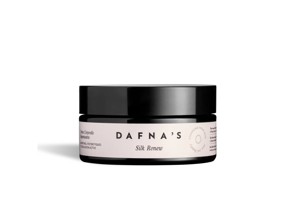 Dafna's Skincare SILK RENEW - Obnovujúci telový krém 3 v 1 premení vašu pokožku už po prvom použití. Jeho zloženie novej generácie kombinuje jemnú mechanickú a enzymatickú exfoliáciu, bioretinol a postbiotiká v krémovej forme bez oplachovania, čím sa aplikácia mení na skutočný zmyslový rituál.
