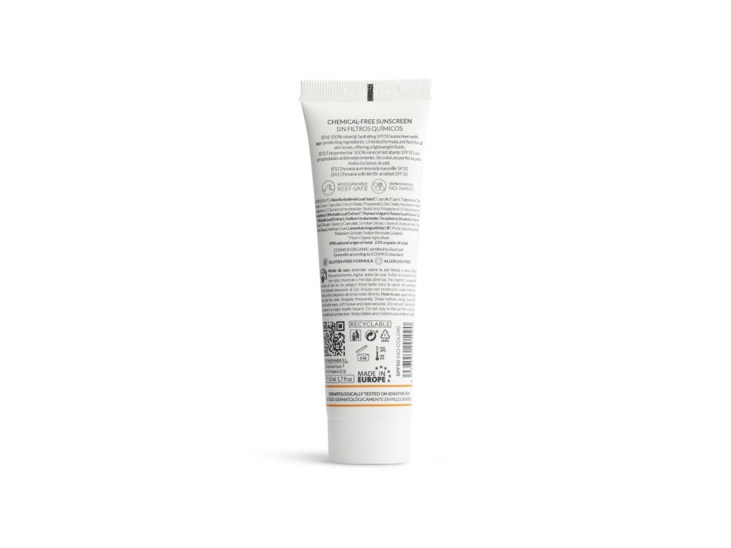 Použité minerální filtry bez nanočástic, jako je oxid zinečnatý a oxid titaničitý zaručují účinnou ochranu před slunečním zářením. Na rozdíl od chemických filtrů chrání okamžitě tím, že odrážejí paprsky, aniž by pronikaly do hlubších vrstev pokožky. Biologicky odbouratelné složení respektuje oceány a nezanechává žádné toxické zbytky, které by mohly poškodit korálové útesy.