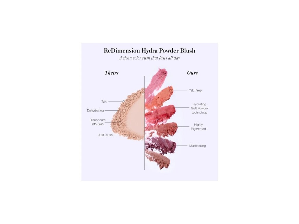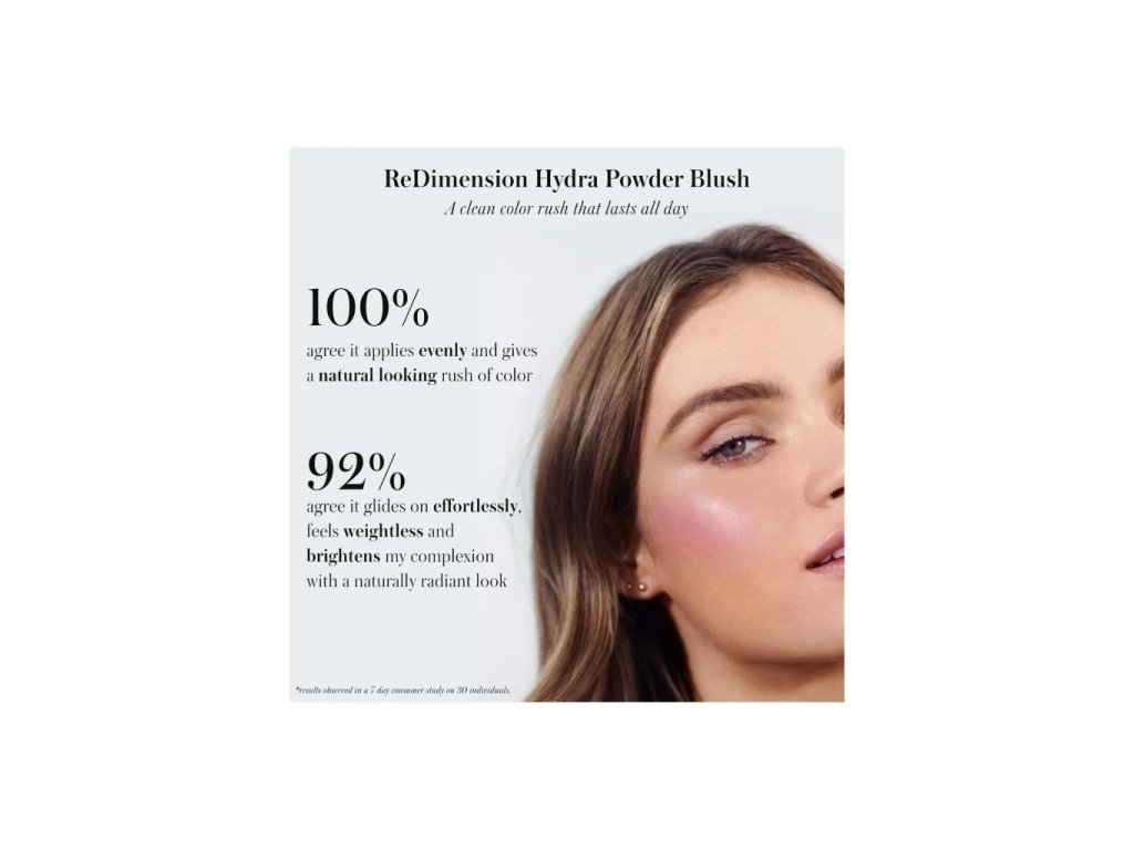 Namiesto rumelca sľubuje prežiarené líce. Zoznámte sa s nadpozemskou ReDimension Hydra Powder Blush, ktorá vás prenesie do novej dimenzie lícenek. Jej superschopnosť pramení z technológie Gel2Powder. Že ste o tejto technológii ešte nepočuli? Gel2Powder sa pýši ľahkú a krémovú textúru, ktorá hladko kĺže po pleti a vytvára dlhotrvajúcu a viacrozmernú farbu. V zložení objavíte aj jojobový olej, ktorý v spolupráci s divokým buriti olejom vyživuje a vyhladzuje pleť.