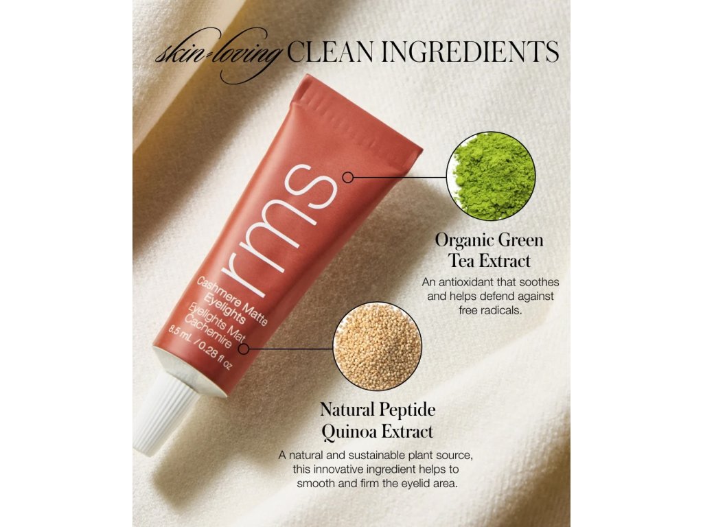 RMS Beauty Cashmere Matte Eyelights – ikonické krémové očné tiene, ktoré poznáte a milujete, teraz s kašmírovým matným perleťovým povrchom. Tieto dlhotrvácne, nerozmazateľné krémové očné tiene sú k dispozícii v 8 nových trendových odtieňoch s jemným leskom a poskytujú sýtu, multidimenzionálnu farbu, ktorá vydrží celý deň a nikdy sa nezráža. Sú dostatočne jemné na denné nosenie a môžu sa vrstviť pre dramatický večerný look.