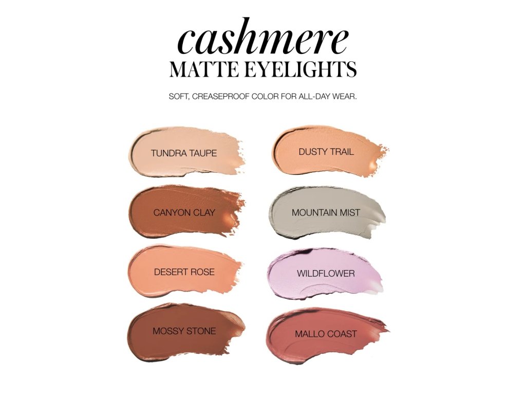 RMS Beauty Cashmere Matte Eyelights – ikonické krémové očné tiene, ktoré poznáte a milujete, teraz s kašmírovým matným perleťovým povrchom. Tieto dlhotrvácne, nerozmazateľné krémové očné tiene sú k dispozícii v 8 nových trendových odtieňoch s jemným leskom a poskytujú sýtu, multidimenzionálnu farbu, ktorá vydrží celý deň a nikdy sa nezráža. Sú dostatočne jemné na denné nosenie a môžu sa vrstviť pre dramatický večerný look.