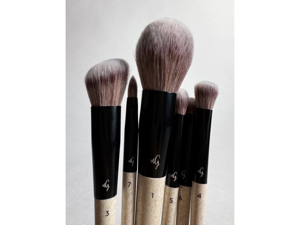 Z práškovej pšeničnej slamy a organického plastu vyrobeného z kukuričného škrobu sa vytvorili krásne tvarované rukoväte a vlasy kefy - mäkké, s jemným leskom - sú vyrobené zo 100 % recyklovaného plastu.