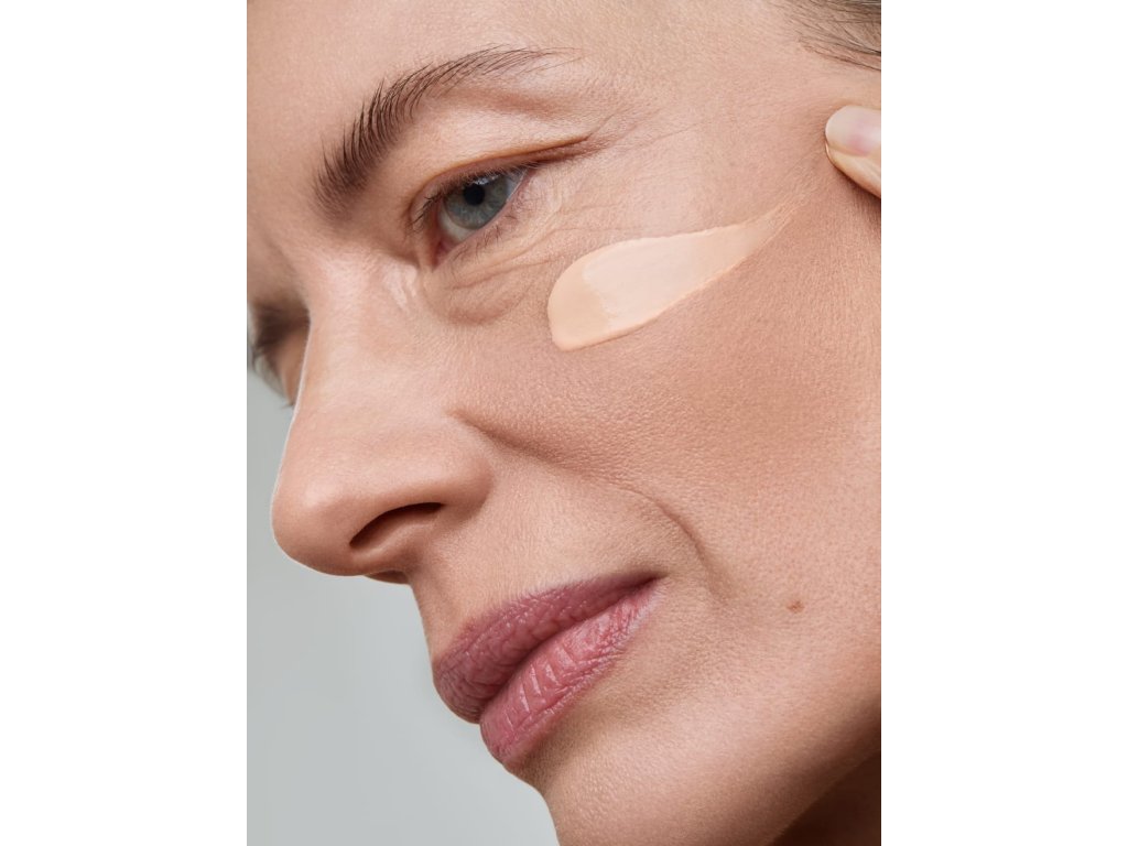 Pokiaľ chcete dosiahnuť bezchybný vzhľad, naneste po dennej starostlivosti malé množstvo make-upu na pleť. Jemne ho rozotrite prstami – textúra sa dokonale prispôsobí vašej pleti. Pre maximálne krytie aplikujte druhú vrstvu tam, kde je to potrebné. Výsledkom bude zjednotený a žiarivý vzhľad. Pre dokonale hladké splynutie môžete použiť navlhčenú kozmetickú hubku MAKE-UP BLENDER.