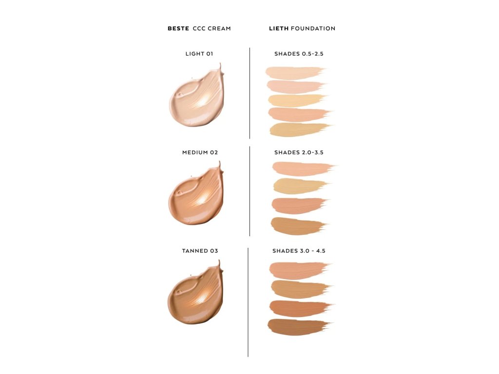 Pro střední tóny pleti, studený béžový odstín s růžovými podtóny pro rovnoměrný barevný tón.